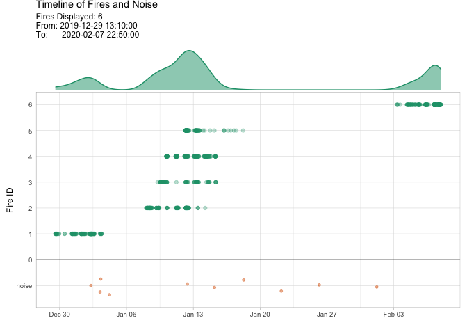 To examine the time line of clusters and learn about the intensity of fire periods, use the option “timeline”.