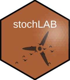 The {stochLAB} package is an adaptation of the R code developed by Masden (2015) to incorporate variability and uncertainty in the avian collision risk model originally developed by Band (2012). The package is for use by individuals modelling collision risk of seabirds at offshore wind farms. The primary functions take input information on the morphology, behaviour and densities of seabirds as well data pertaining to the proposed wind farm (i.e., turbine dimensions, speed and number).