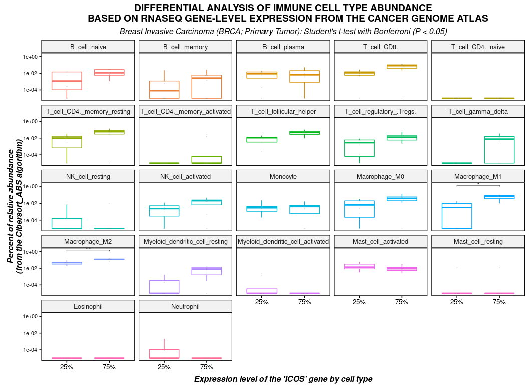 Differential analysis of tumor tissue immune cell type abundance based on RNASeq gene-level expression from The Cancer Genome Atlas (TCGA) database.