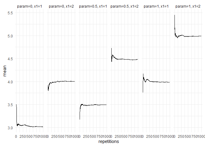 #>     data <- rnorm(n, mean = param) + x1 + x2