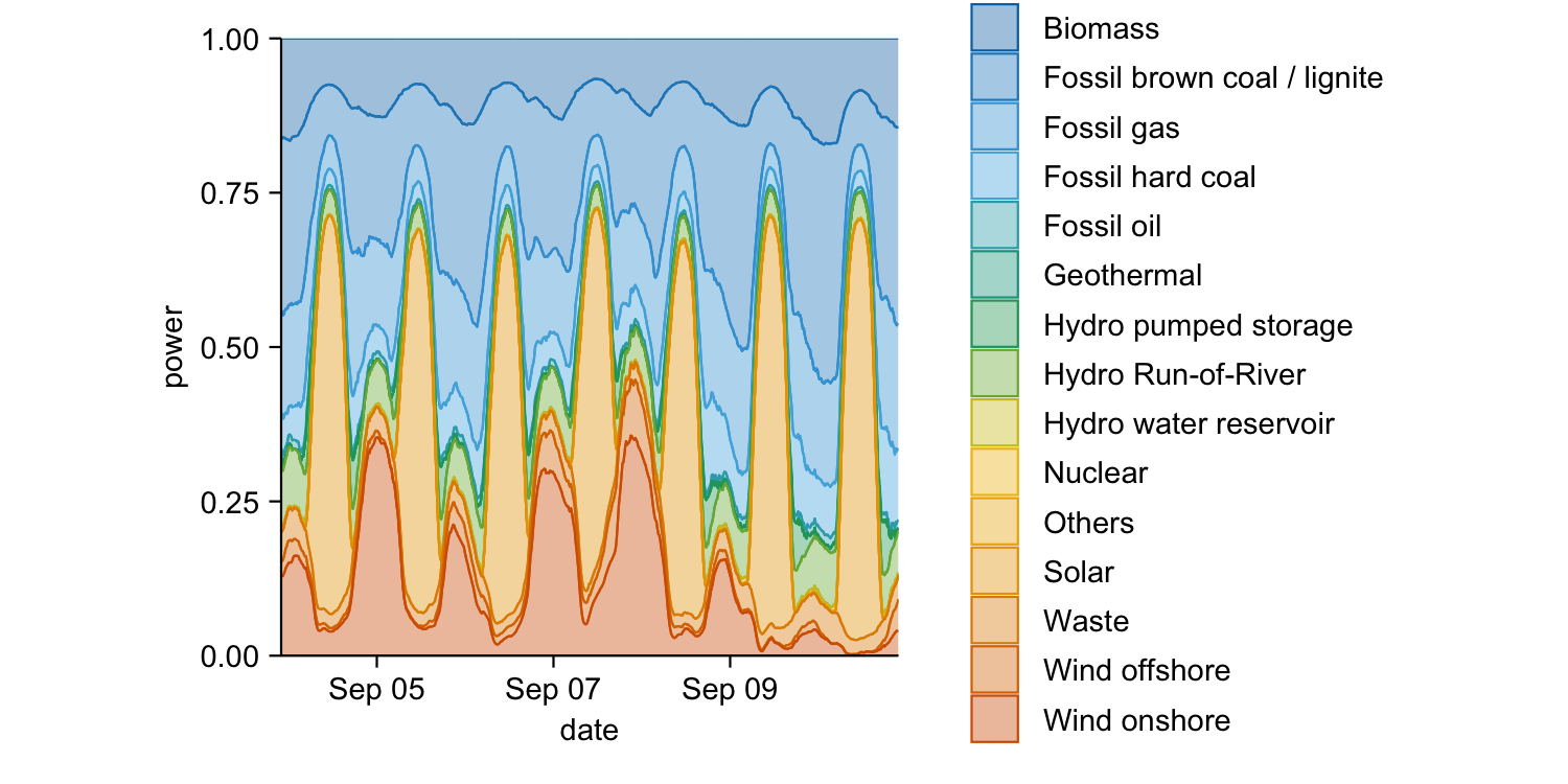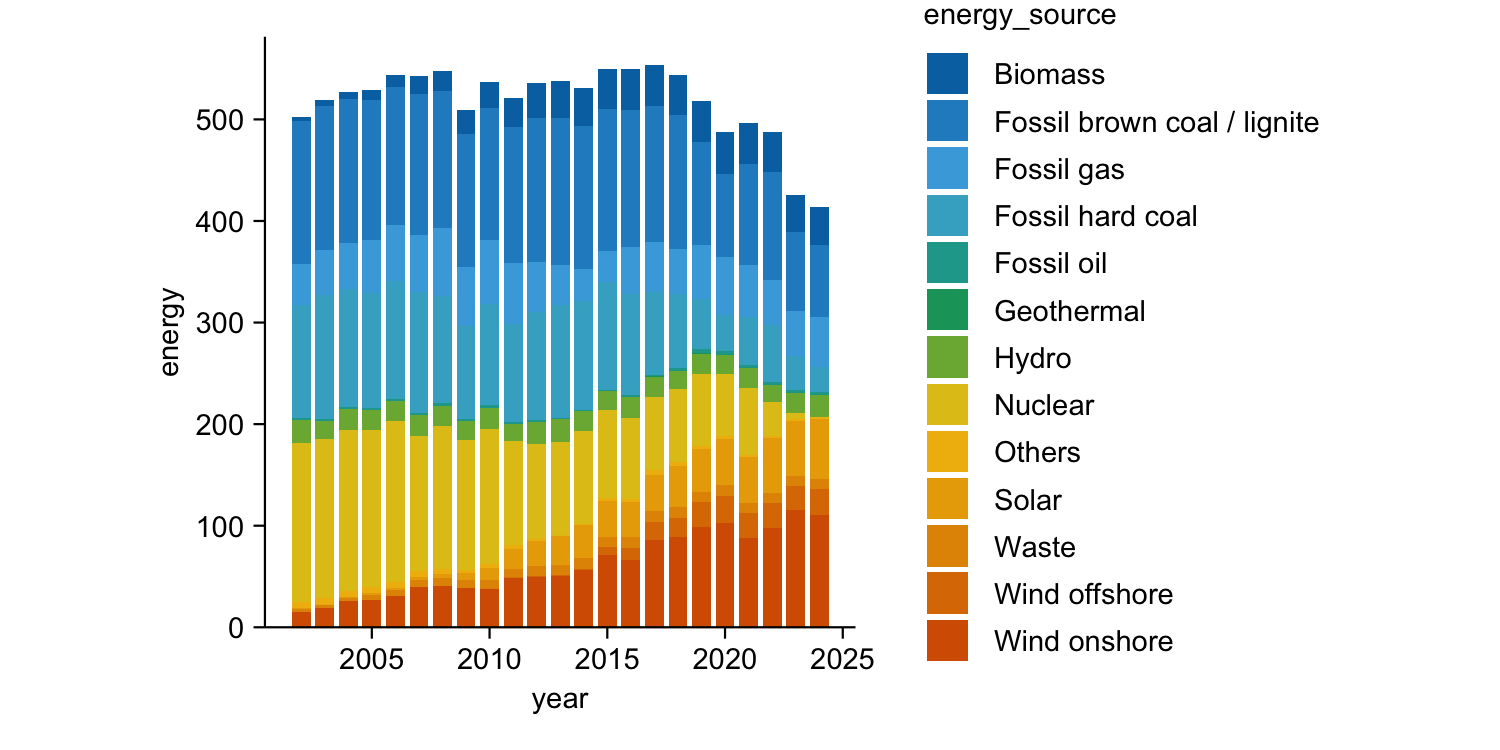 dplyrtidyplot(y = energy, color = energy_source) |>