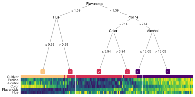heat_tree(wine, target_lab = 'Type', target_lab_disp = 'Cultivar')